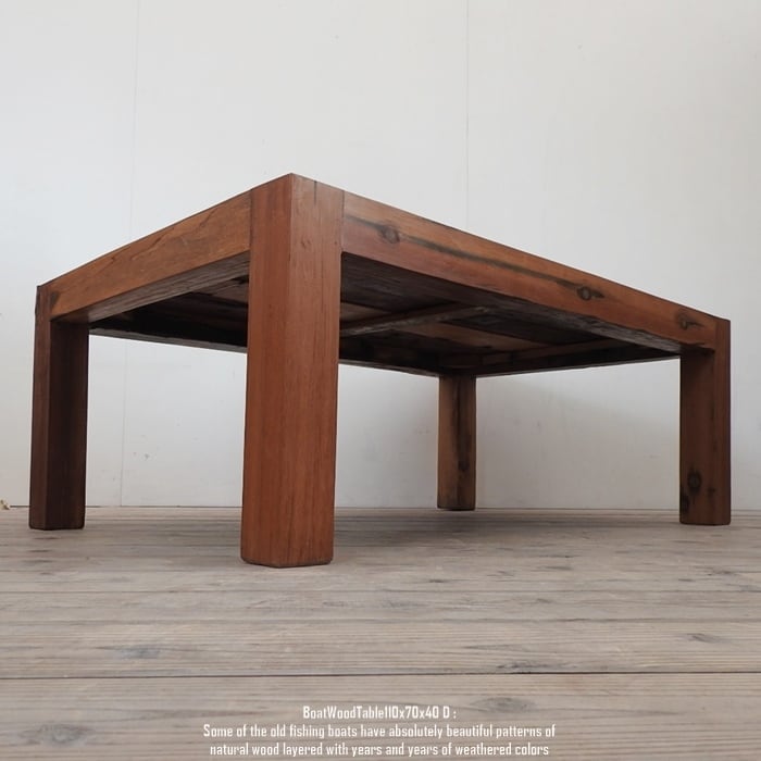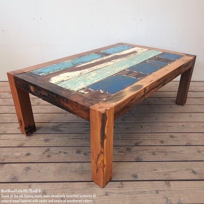 一点物 リサイクルウッドテーブル 110cmx70cmx40cm ボートウッド 船古材 ボート再生家具 古材 ローテーブル 机 ちゃぶ台 長方形 ログハウス リサイクルウッド リユース木材 アンティーク 無垢材 アジアン家具 ハンドメイド バリ家具 店舗什器 業販 卸 スーパーセール