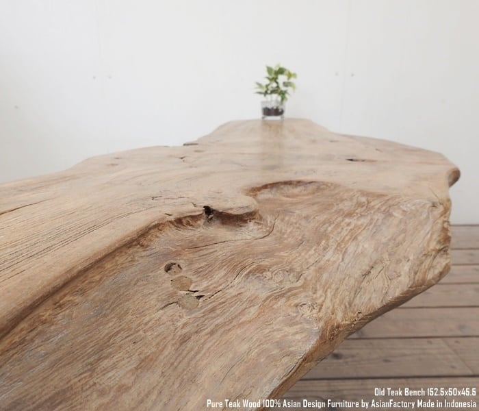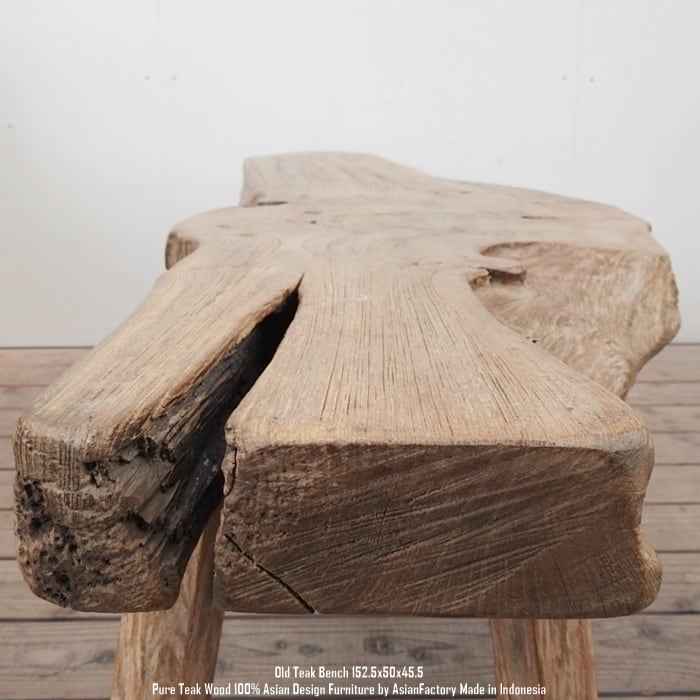 堅牢な古材であるオールドチーク材のみを使用したベンチ152.5cmです。